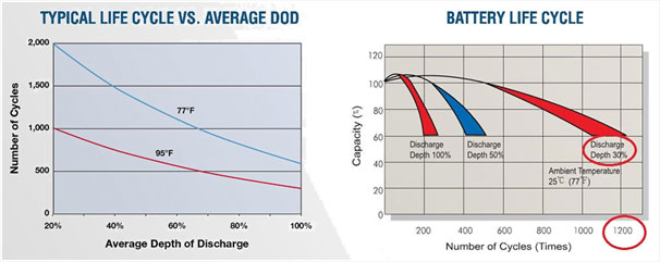 DOD is used to describe how deeply the battery is discharged. If we say a battery is 100% fully charged, it means the DOD of this battery is 0%, if we say the battery have delivered 30% of its energy, here are 70% reserved, we say the DOD of this battery is 30%.